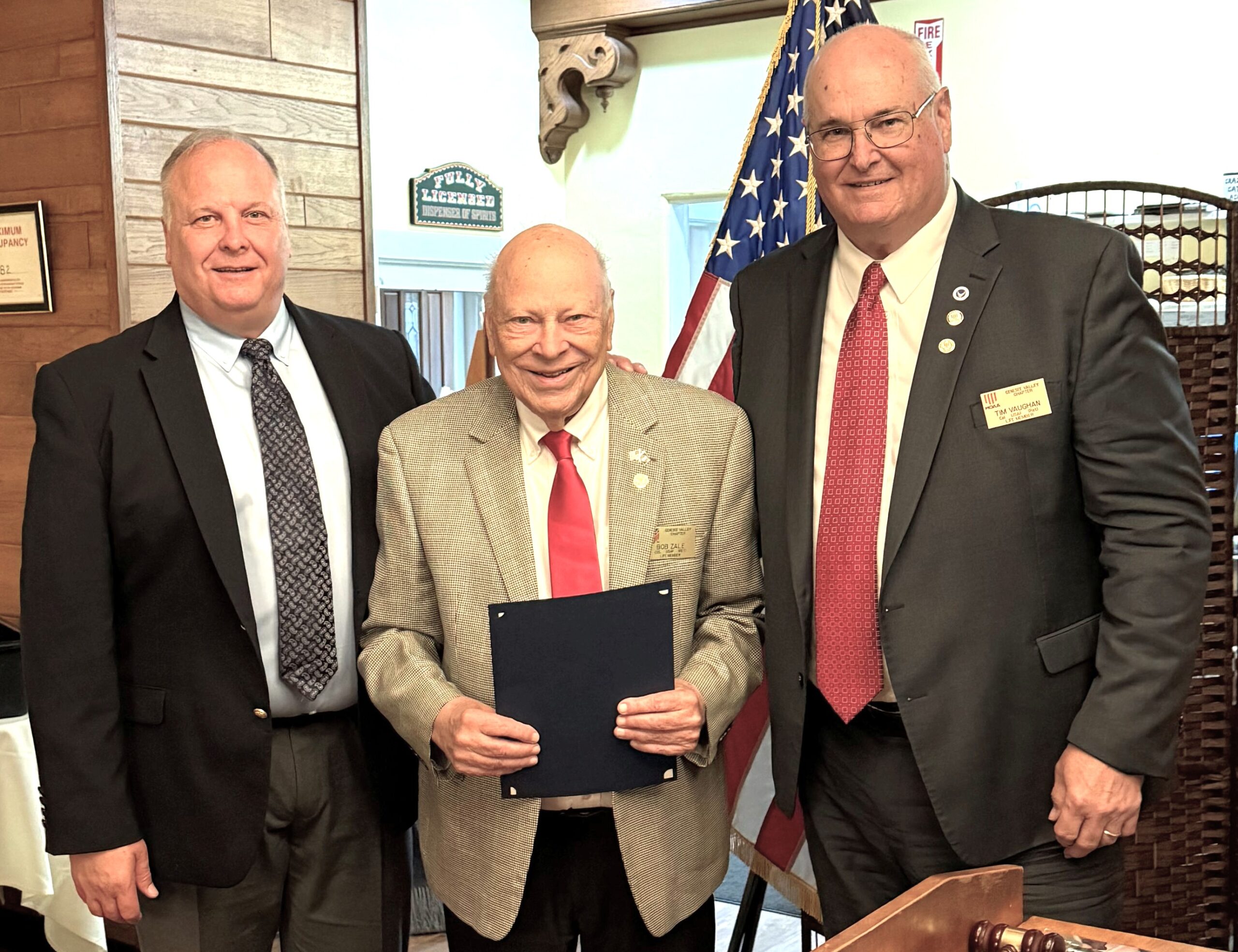 Bob Zale is presented the MOAA Leadership Award for his longstanding support of the Genesee Valley Chapter as a Past President and ROTC/JROTC liaison.