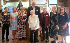 Pictured left to right, Shirley Van Branteghem, Nancy Fine, Kathy Crelot, Dorie Malucci, President Tim Vaughan, Marion Mench, Joan Tierney, Kathy Green.