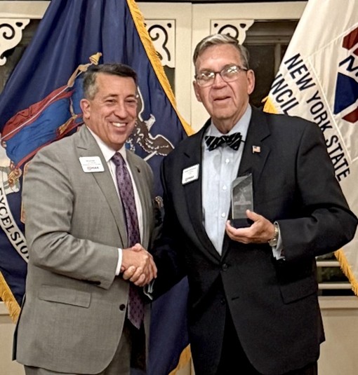 Current Florida Council of Chapters Legislative Chair and a New York State Council of Chapters Past President, Bob Bienvenue, is awarded the MOAA Col. Steve Strobridge Legislative Chair Award by MOAA President and CEO, Lt Gen Brian Kelly, USAF (Ret)at the 2025 New York State Council of Chapters Annual Convention in Saratoga Springs New York.
